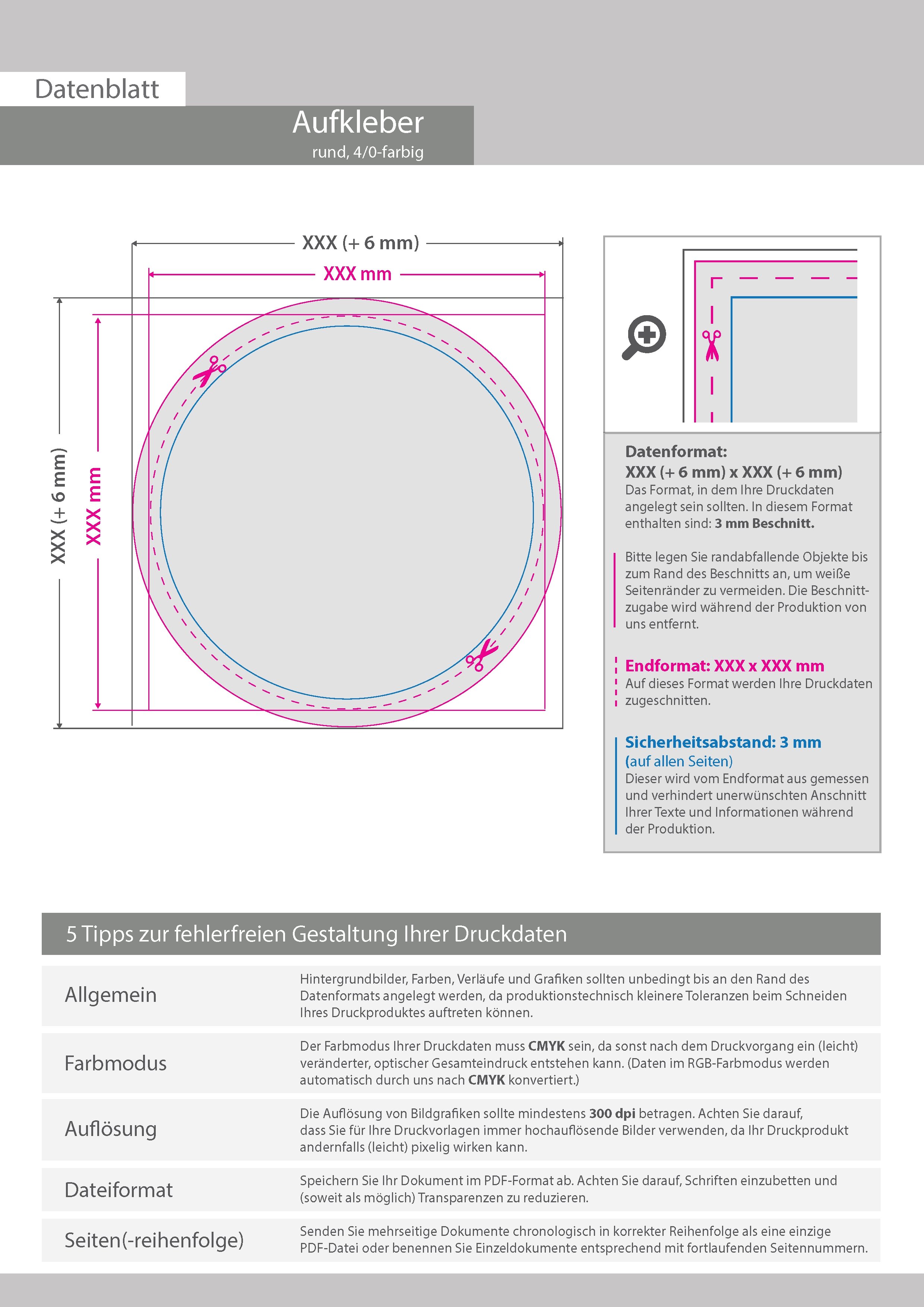 Aufkleber statisch haftend 4/0 farbig bedruckt rund (kreisrund konturgeschnitten)